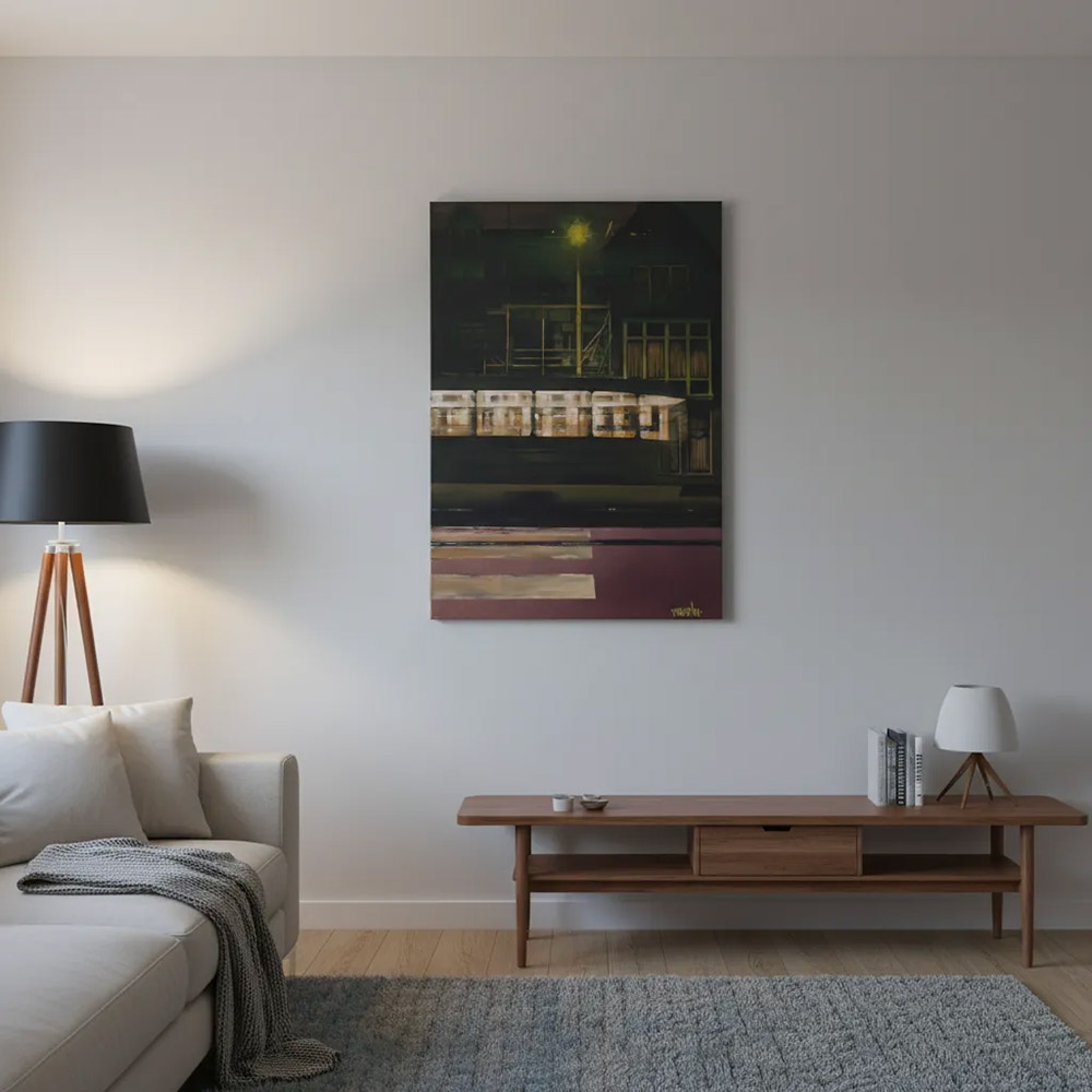 Perfect for modern, minimalist or industrial interiors, this piece adds energy, narrative depth, and a striking focal point. Whether displayed in a living room, office or loft, it invites viewers to pause, reflect and connect with the familiar cadence of city life.